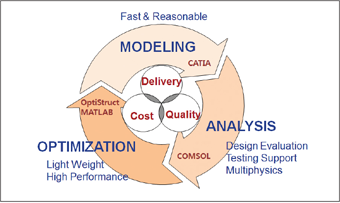 - 제품설계과정에서 가장 효과적인 최적상태의 설계안을 도출을 위한 최신의 전산설계기법과 설계방법론 개발